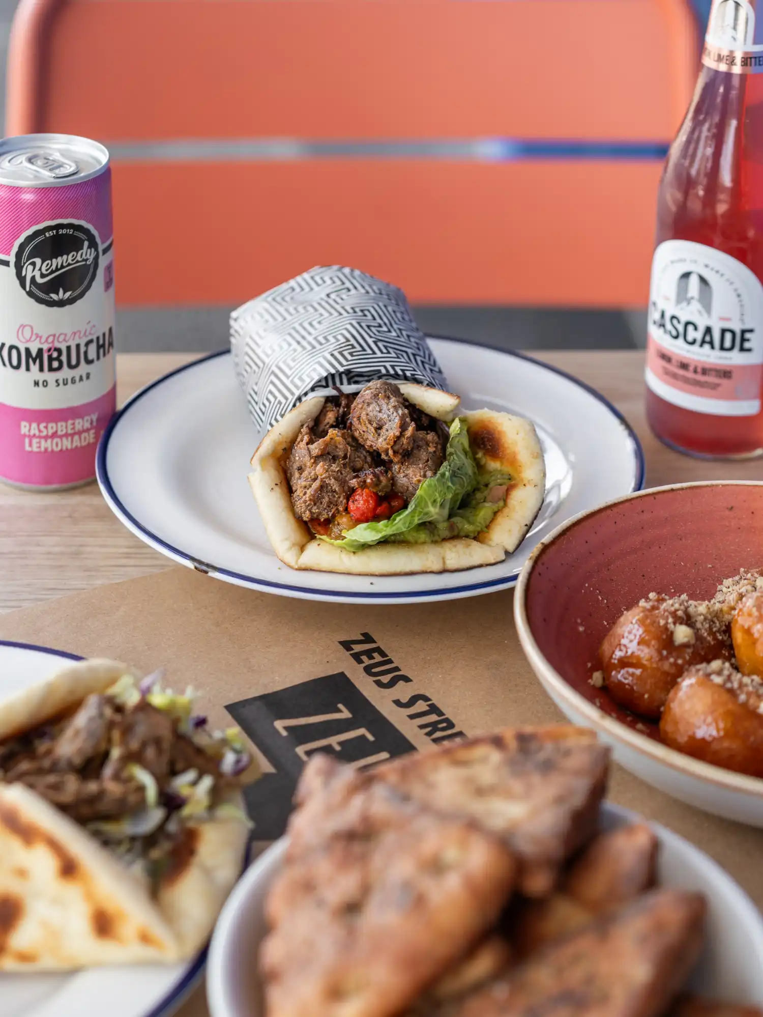 To highlight the partnership between Zeus Street Greek and Fable, I focused on the vegan mushroom wrap. I built a full dining scene around it with extra sides to create a mouth-watering setting that looked like a complete Greek feast.
