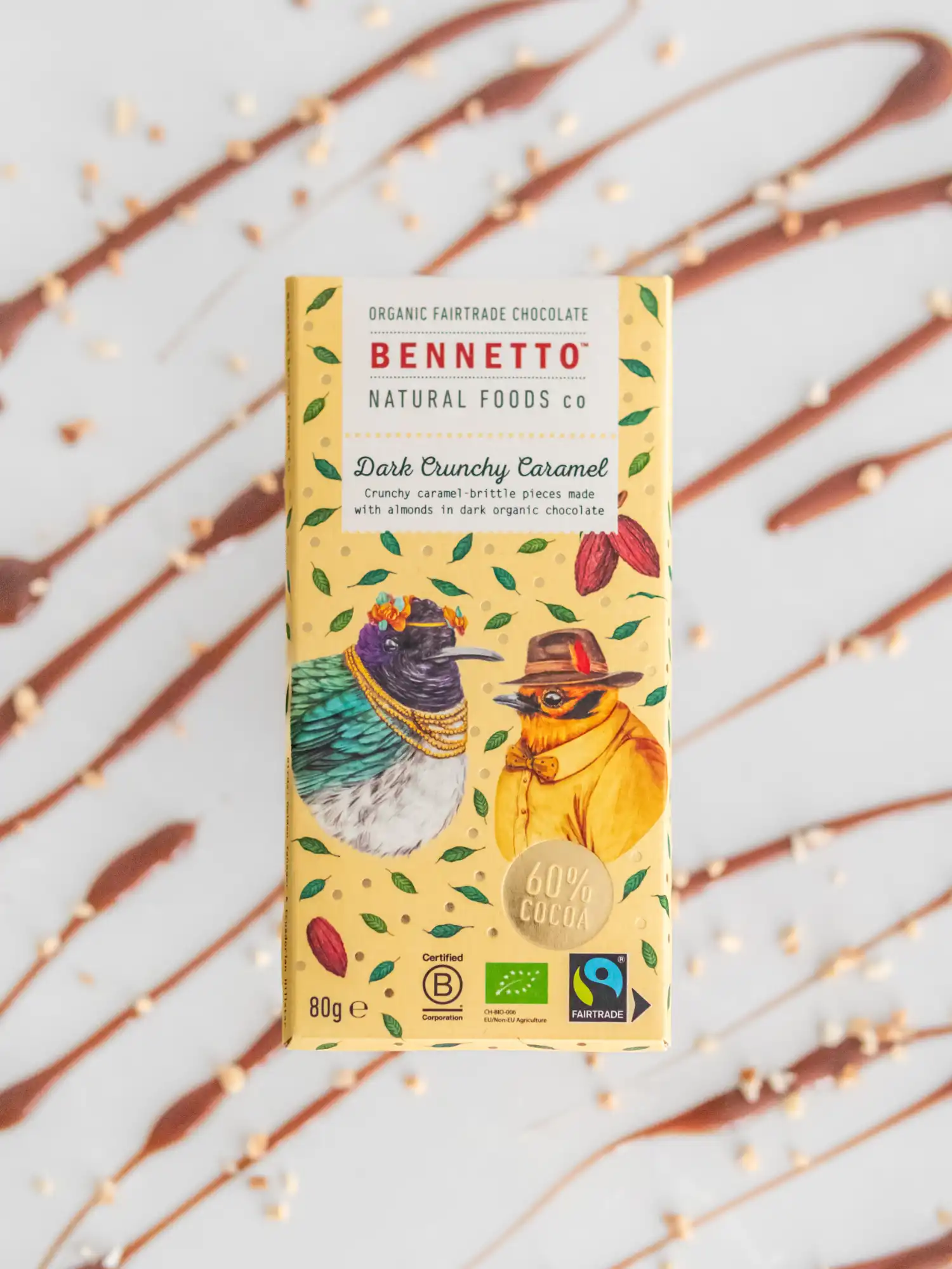 Bennetto needed creative assets for their chocolate bars. I shot the packaging for brand recognition and took detailed close-ups of the cross-sections. These texture shots help customers imagine the crunch and quality of the chocolate before they buy it.