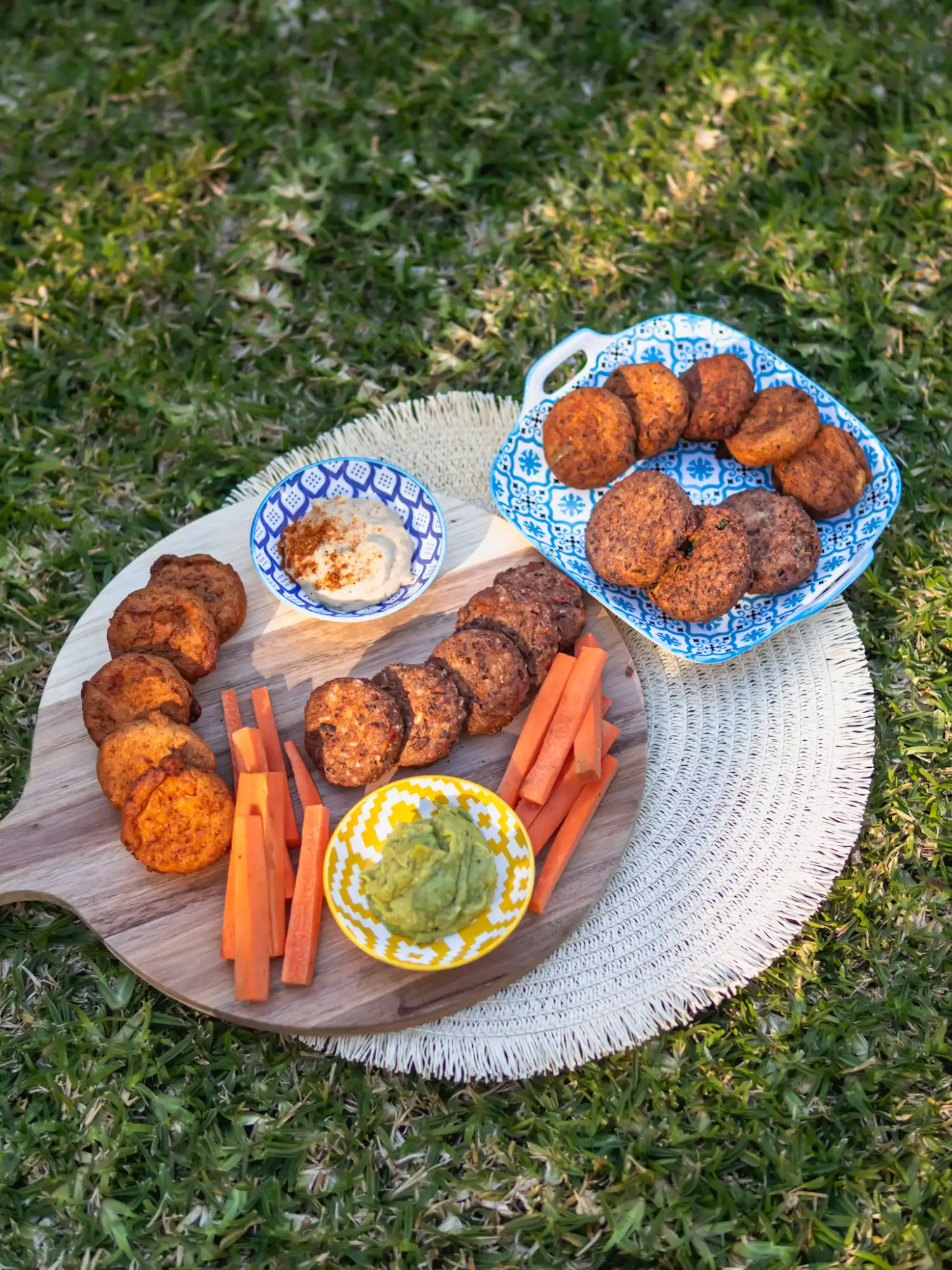 This lifestyle shoot captured the full customer experience. First, I photographed the products on the shelf at Harris Farm. Then, I styled a picnic scene with a charcuterie board to show delicious ways to enjoy their fritters.